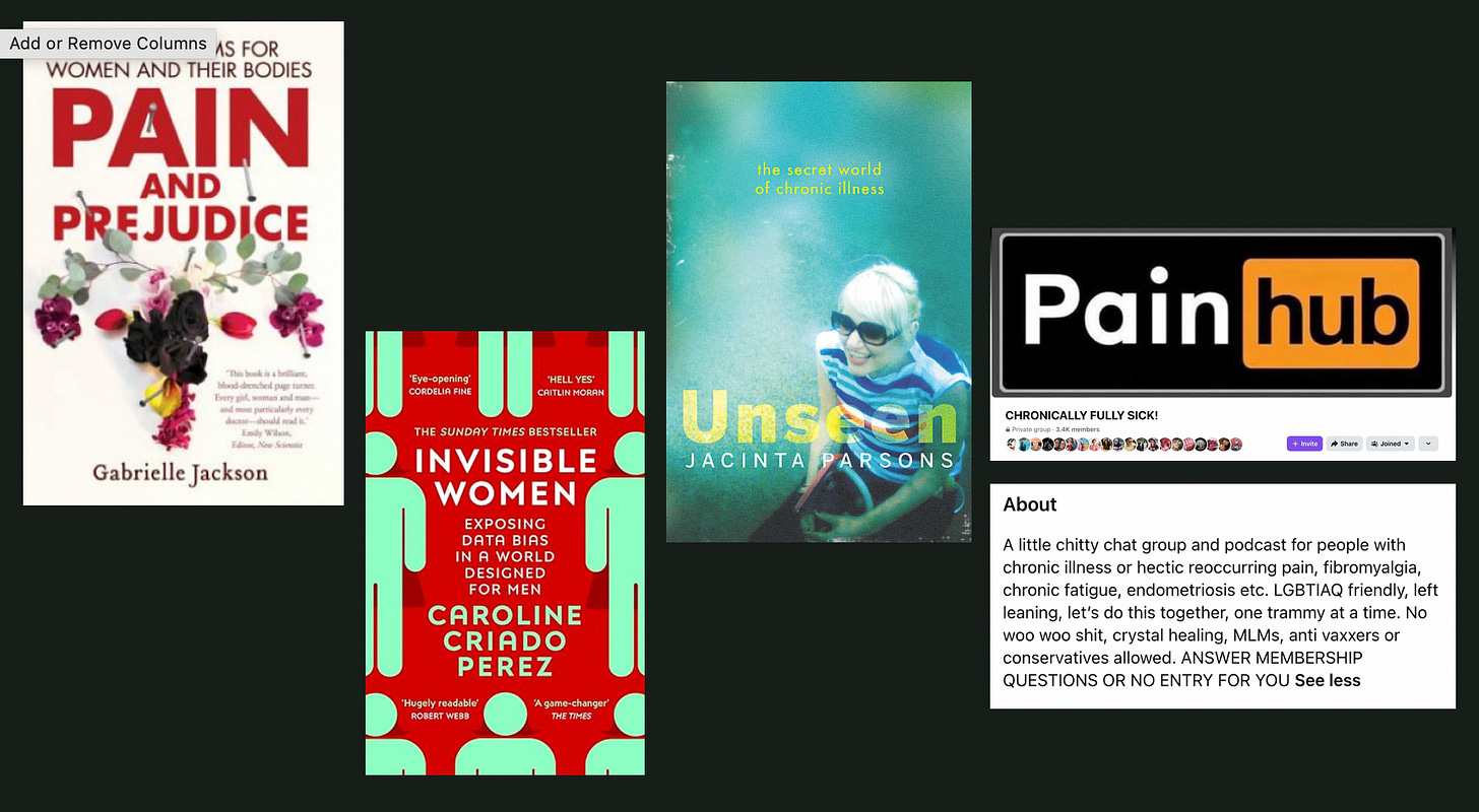 In recent years there have been a bunch of books about women’s chronic pain and how it’s woefully under-researched.