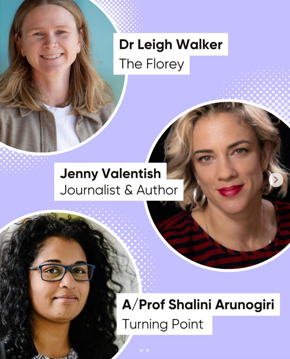 At this event, I had the opportunity to highlight the three topics I think urgently need attention when it comes to women and addiction – but yet which rarely get discussed. And it turned out that my co-speakers – Associate Professor Shalini Arunogiri, who’s the clinical director at Turning Point, and neuroscientist Dr Leigh Walker – would also touch on these topics. THEY’RE IMPORTANT. Let’s go.