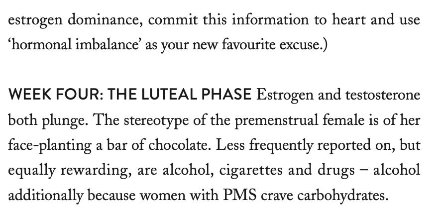 It’s weird that this isn’t more of a topic of conversation, because any GP could tell you that a woman’s menstrual cycle causes fluctuations in her renal, cardiovascular, haematological and immune systems, so it stands to reason that these fluctuations would have a knock-on effect on the way a woman’s body processes substances.